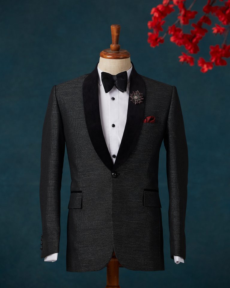This suit embodies understated luxury, offering a sleek and contemporary look with exceptional comfort. The fabric, a premium blend of fine wool and subtle fibers, provides a smooth, luxurious feel and excellent breathability. The jacket features a modern lapel and a perfectly balanced cut, while the trousers are tailored for a sharp, streamlined silhouette. Perfect for business meetings or formal events, this suit ensures a polished and professional appearance. The subtle detailing and refined finish highlight the superior craftsmanship. Rhobes’ commitment to quality ensures this suit will be a staple in your wardrobe.